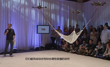 2012年2月,宾夕法尼亚大学的V.Kumar教授在TED大会上做出了四旋翼飞行器发展历史上里程碑式的演讲,展示了四旋翼的灵活性以及编队协作能力。这一场充满数学公式的演讲大受欢迎,它让世人看到了多旋翼的内在潜能。